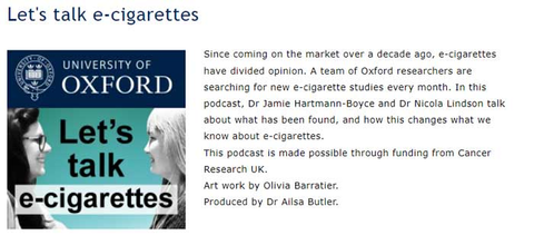 We have been keeping up with the excellent “Let’s talk e-cigarettes” podcasts created by a team of Oxford University researchers.
